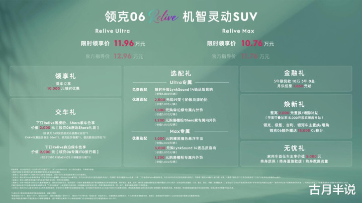当竞品还在为减配找借口时,领克06 Relive的限时专享价10.76万元起如同投入市场的深水炸弹。这不仅是数字游戏——Ultra版直接免费升级价值6000元的Lynk Sound 14扬声器音响,将百万级豪车的声学配置拽进10万区间。更狠的是选装策略:19英寸马牌轮胎轮毂2500元抄底价(原价5000元),森珀绿专属内饰仅需1500元(价值5000元),刀法精准地砍向年轻用户痒点。